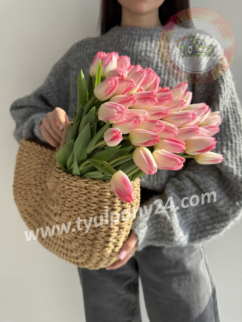 Розовый светлый бутон с белой каймой, листва и ножка средняя.